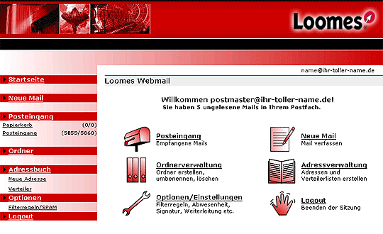 Mit Loomes Webmail haben Sie jederzeit und unabhängig von Ihrem Standort die Möglichkeit, E-Mails abzurufen, zu versenden und Filterregeln zu definieren.